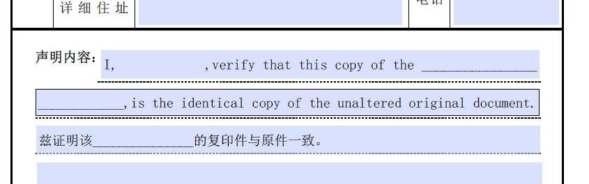 说明:对于公司公证认证在填写这类声明书的时,需要加上这段英文,只是填写中文无法公证。