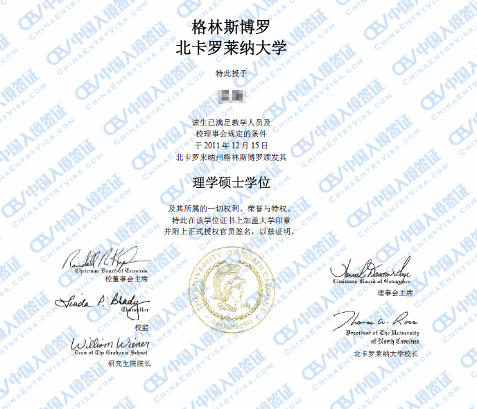 北卡大学学位翻译,North Carolina 翻译样本